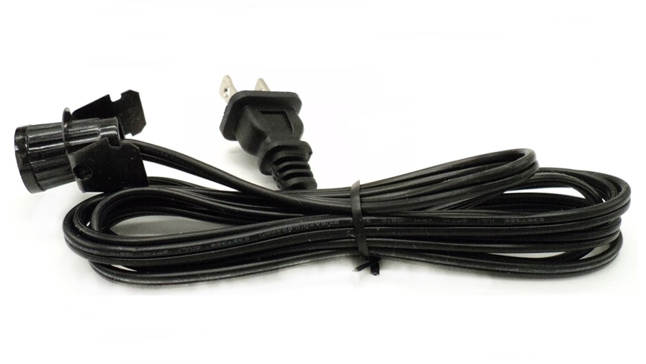 This 6 foot C7 Black Blow Mold Light Cord with an E12 Candelabra base socket can be used for most smaller Union Products, General Foam, Grand Venture and TPI blow molds. These blow mold light cords are safe for use in the U.S. and Canada. Each light cord includes a clip in socket that fits one inch openings. While there is no guarantee that this light cord will fit literally any blow mold with a one inch opening, it has been tested and found to be a replacement for virtually any brand. The bulb socket can safely accommodate incandescent, LED or CFL bulbs ranging from 5W to a maximum of 7W. These black C7 light cords are most frequently used with Halloween products. Please click the Specifications and Shipping Tab for more information. This light cord is rated for indoor use only. Bulb not included.