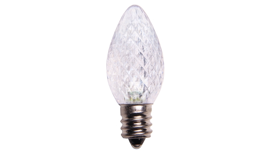 Save money while making the Christmas season merry and bright with our Minleon C7 LED cool white replacement bulbs. These retrofit steady burn bulbs have three LED’s and they have an E12 Candelabra nickle base. These bulbs are dimmable too. With an average life of 50,000 hours, these bulbs will save you money and they’ll last for years. Our replacement bulbs are made with a tough faceted plastic that will not fade, chip or crack and they can be used indoors or outdoors. There are 25 bulbs per poly bag.