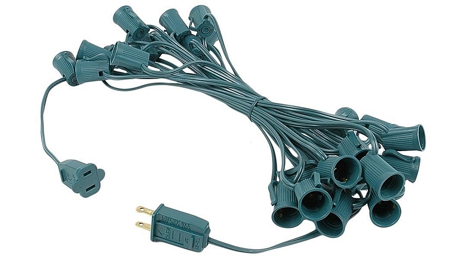 Our C9 25-foot green wire light strings can be used for incandescent and retrofit LED bulbs as well as G50 globes for those big Christmas lighting projects. Each string has 25 E17 Intermediate sockets with 12-inch spacing. Two strings can be connected end-to-end when using 7 watt bulbs. Safe for indoor and outdoor use.