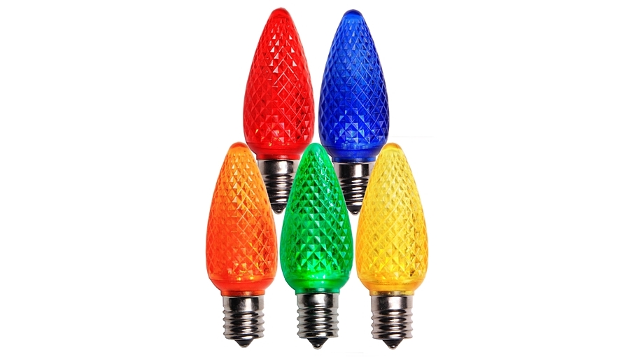 Our C9 LED Multi Color Retrofit Dimmable Bulbs feature the new Surface Mounted Diodes design, which makes these bulbs 10% brighter than others that can be found on the market. These LED bulbs have an E17 Intermediate nickle base and they can be used for indoor or outdoor Christmas decorating, special event lighting and landscaping. When used with a controller for light shows, our C9 LED dimmable bulbs can be used to create multiple effects while providing vivid flicker free lighting. These dimmable bulbs have an average life of 60,000 hours and they’re scratch resistant to make them last for many years. Bulb colors are red, blue, green, orange and yellow. There are five bulbs of each color and 25 bulbs per poly bag.