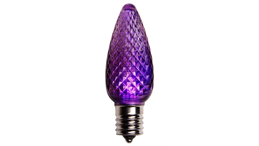 If you want the finest quality and the best price, you can’t beat our Minleon C9 LED purple replacement bulbs. These retrofit steady burn bulbs are also dimmable when using a power adapter. Each bulb has five LED’s with an E17 intermediate nickle base and an average life of 50,000 hours. These LED bulbs will save you money and they’ll last for years. Our retrofit bulbs are made with a tough acrylic resin that will not fade, chip or crack and they can be used indoors or outdoors. There are 25 bulbs per poly bag.