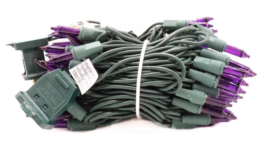 Our bright and durable purple mini lights are perfect for Christmas or Halloween decorating around windows, doors, shrubs and trees. With an average life of 3,000 hours, these mini lights will last for several years. The 100 count light strings can be used indoors or outdoors. Each set includes two replacement bulbs and fuses. These light strings are shipped in poly bags.