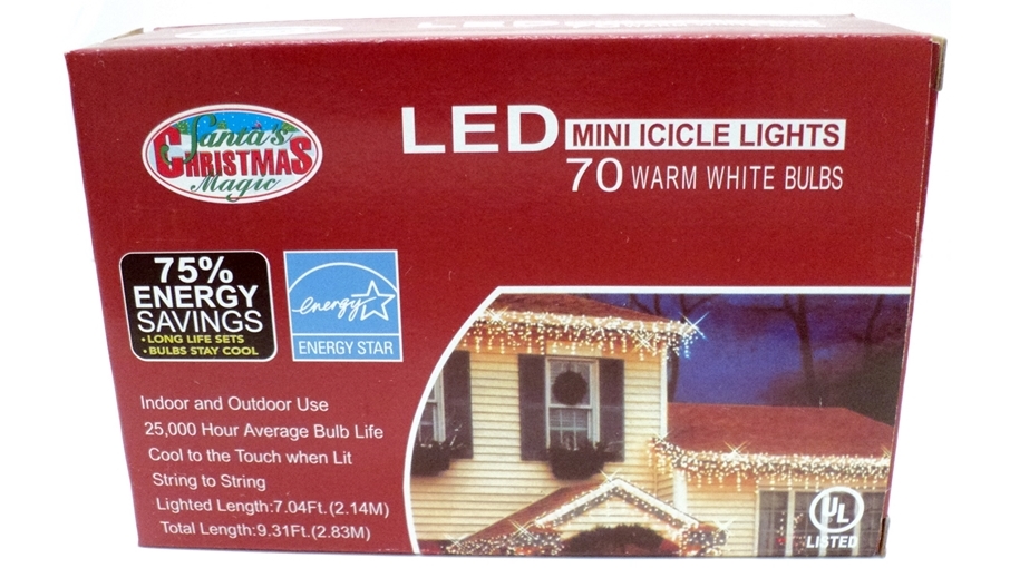 You can give your home a snow covered appearance with our Santa’s Christmas Magic LED warm white icicle lights. Each light string has 70 5mm bulbs with 15 drops that will shine brightly for years. They’re the energy efficient solution for all of your holiday lighting needs. Connect up to 45 strings.